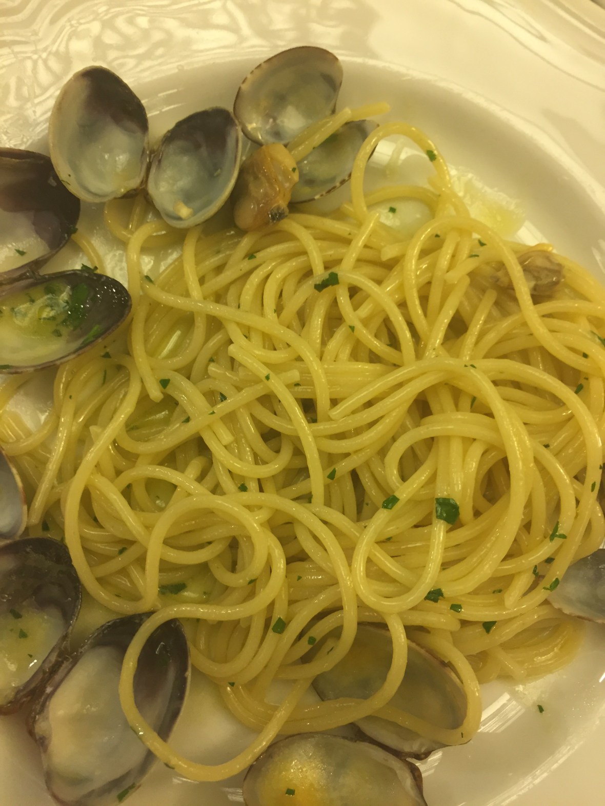 Our first meal in Milan after a long nap and a little bit of jetlag 😩🔫 Only pic i was able to snap before hangry monsters ate it all. Notice how clams are already missing.