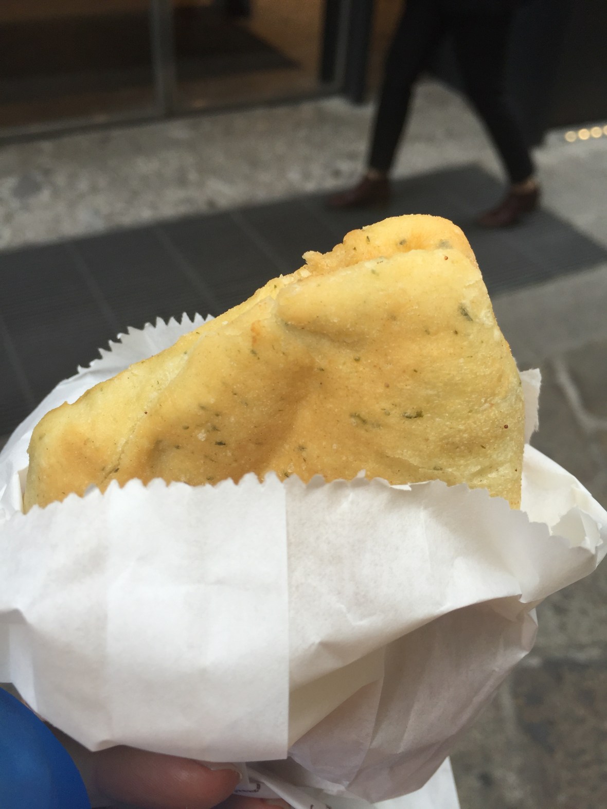 Panzerotti for breakfast from Luini ‘s in Milan. Basically fried dough with a variety of fillings. Need I say more?